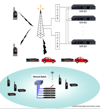 多基站集群系統(tǒng)聯(lián)網(wǎng)結(jié)構(gòu)示意圖